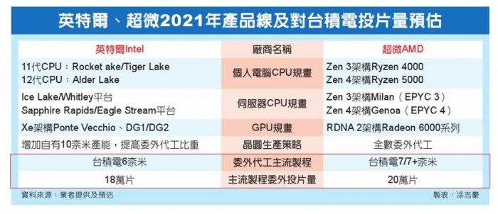 不过,随着英特尔确定委托台积电代工并预订明年6nm产能,AMD又扩大下单拿下多数7nm/7nm+产能,台积电明年上半年先进制程仍将维持满载。