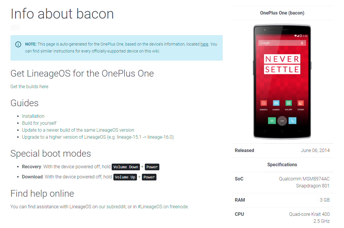 LineageOS官网现已放出适用于初代一加手机的LineageOS 17.1的源文件,并有详细的指导教程。如果你还有这款老爷机,不妨一试。