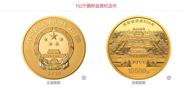 中国人民银行定于2020年8月3日发行紫禁城建成600年金银纪念币一套。该套金银纪念币共7枚,其中金质纪念币2枚,银质纪念币5枚,均为中华人民共和国法定货币。其中最吸引眼球的自然是“1公斤圆形精制金质纪念币”,含纯金1公斤,直径90毫米,面额10000元,成色99.9%,最大发行量100枚。