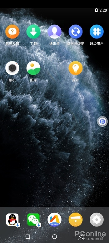 VMOS界面,很多系统级的操作都通过悬浮球实现