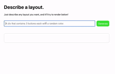 网友 Sharif Shameem 开发出了一个新产品 Debuild。这是一个调用了 GPT-3 API 的网页 app 快速生成器,在输入框里用自然语言进行描述,它就可以快速输出你想要的用户界面,比如输入“生成一个像西瓜一样的按钮”: