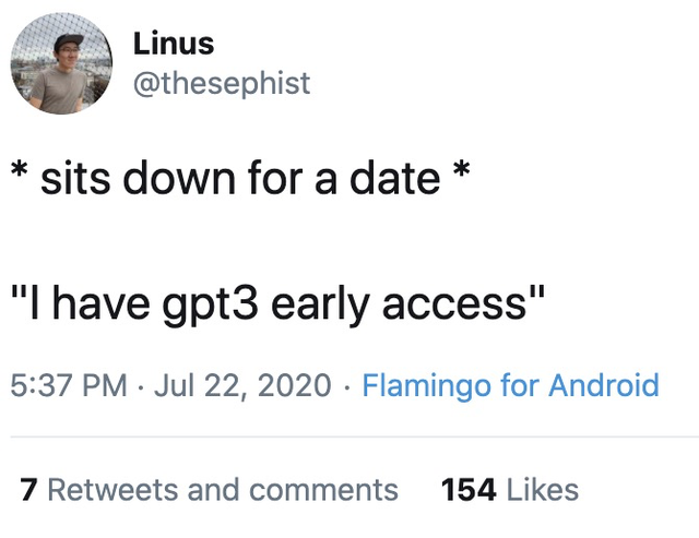 在国外,“ 拿到 GPT-3 测试资格 ” 已经成为了一个“炫富”的新梗……