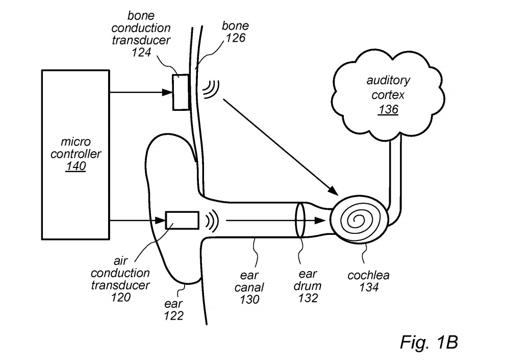 苹果公司确实建议,空气传导系统的构造不会阻挡耳道与其他音频源的联系,即它仍然可以让用户听到环境的声音。其结果是,用户在通过另一种方法接收高频声音的同时,还能享受到骨传导系统比环境音频的好处。在环境音频可能淹没高频声音的情况下,用户仍将通过骨传导获得中低频信号。