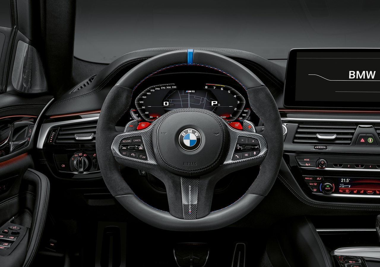 与此同时,M性能处理将采用全新的M性能方向盘、碳纤维换挡板、不锈钢踏板和M品牌的地垫。此外,专为新M5和M5 Competition设计的还有M性能专业方向盘和M性能换挡选择器。
