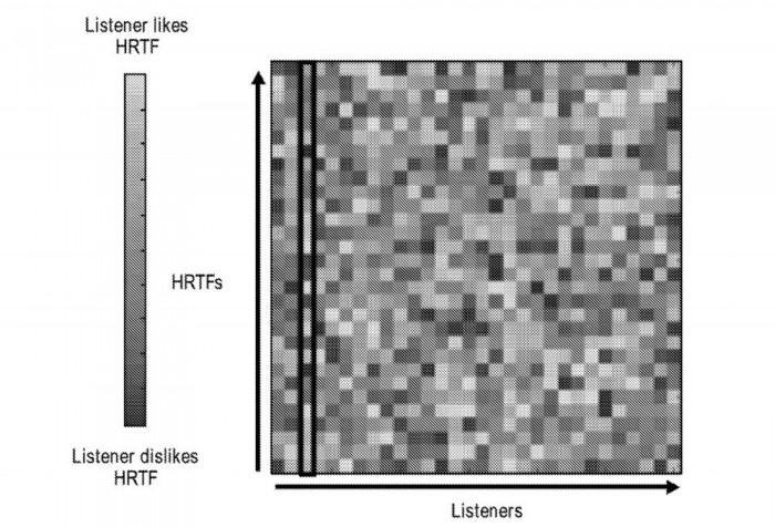 HRTF被用作双耳模拟数字信号处理算法的一部分,以重现录音为双耳声音,再通过耳机播放。该专利的中心思想是,通过将数据库缩减到选定的几个,选择最接近需要的HRTF。修剪过程可以包括拿走那些远离用户基本特征的选项,如身高、性别、种族和年龄。