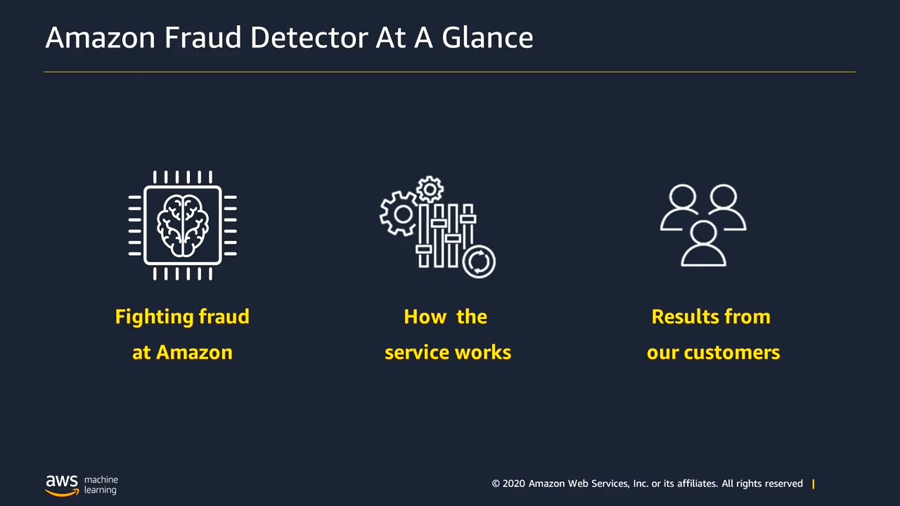 Amazon Fraud Detector 中预构建的机器学习模型模板是基于过去 20 多年阻止不法分子试图欺诈 AWS 和 Amazon.com 的经验而开发的。例如,Amazon Fraud Detector 使用与 AWS 账户注册流程中的模型类似的模型来针对低风险和高风险注册创建不同账户验证步骤。