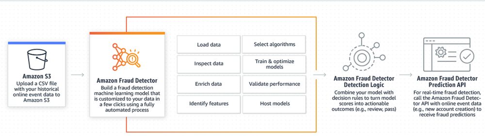 Amazon Fraud Detector 自动处理构建、训练、调优和部署欺诈检测模型所需的复杂任务,从而使反欺诈团队能更快速地行动。创建模型之后,他们能够创建、查看和更新规则来启用基于模型预测的操作,而无需依赖其他人的帮助。