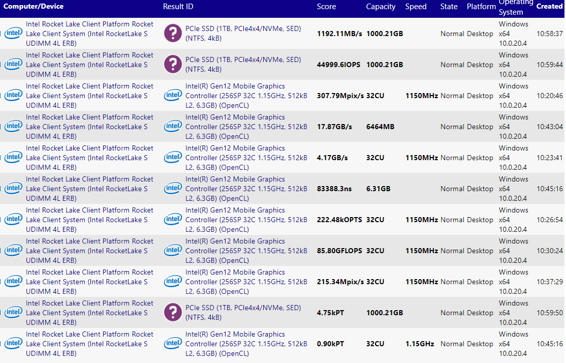 SiSoftware数据库内出现了一套新的Rocket Lake系统,其中硬盘赫然就是PCIe 4.0 SSD,容量1TB,支持PCIe 4.0 x4、NVMe。