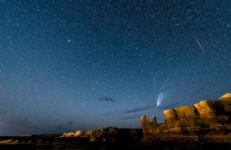上周,CNET记者Eric Mack冒险来到新墨西哥州沙漠异常黑暗的夜晚,距离最近的小镇的灯光有几英里远。他转向北方,找到天空中的北斗星,并将目光向下移动了一下。彗星Neowise带着长长的、闪闪发光的尾巴立即显现出来,甚至在他的眼睛还没有完全适应黑暗的时候。