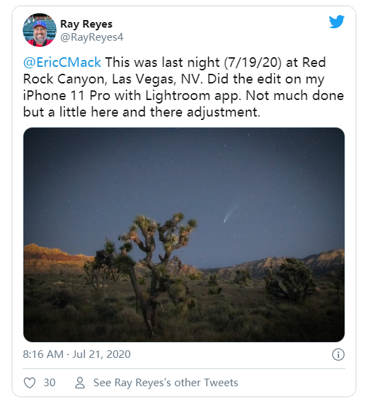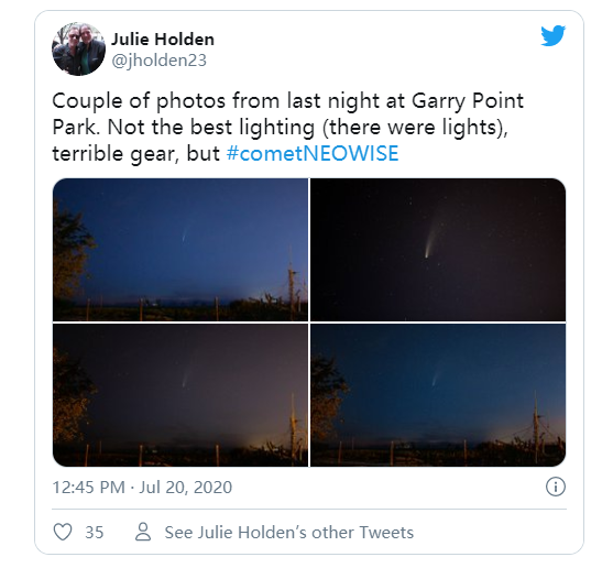 此外也有一些Twitter网友分享他们拍摄到的最佳Neowise照片。