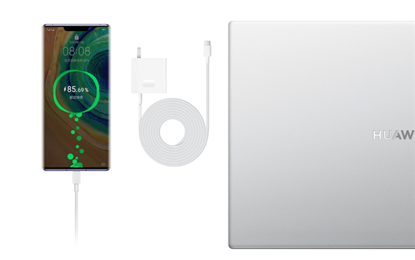 电池方面,MateBook D 2020锐龙版配备了65W USB-C便携充电器,重量只有160克,半小时即可充入53%的电量,还支持华为手机超级快充。