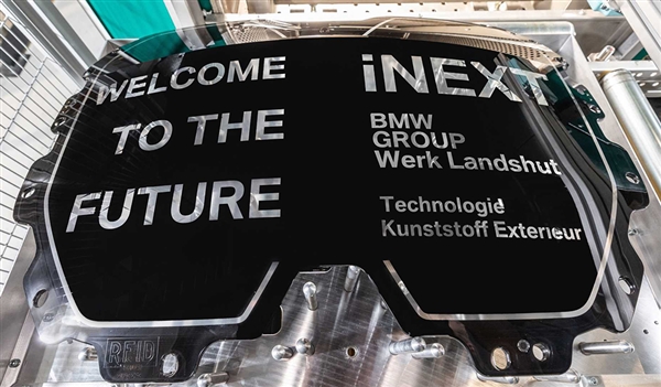 从图片来看,宝马iNEXT的双肾形格栅造型与刚刚亮相的全新宝马4系相似,面积变得更大,但从透气格栅变成了全黑封闭式格栅,同时印有“欢迎来到未来”的字样,这似乎预示着车型、中网科技化程度之高。