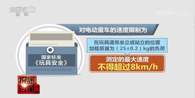 图:国家标准《玩具安全》规定电动童车的速度不得超过8km/h