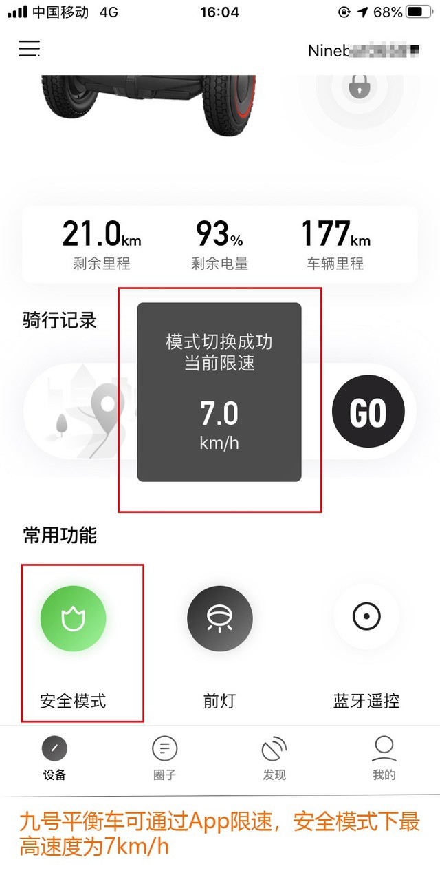 图:Ninebot平衡车在醒目位置贴了安全警示