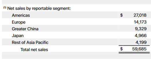 大中华区净营收为93.29亿美元,相比之下去年同期为91.57亿美元;