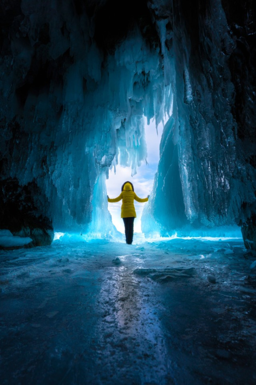 另一个张非常吸引人的照片出自俄罗斯摄影师Pavel Tokarev,他在位于西伯利亚南部的贝加尔湖的冰洞中拍下了这张作品。Tokarev表示,这些洞穴只有在每年湖面结冰的时候才会有一小段时间可以进入。“在夏天,你无法到达这些洞穴,即使乘船也不行--进入洞穴的唯一途径就是等待冬天所有的水都结冰了,所以你只能步行。到处都是冰,从上面垂下来并顺着墙面流着。感觉就像有一面镜子在地上铺展开来。”