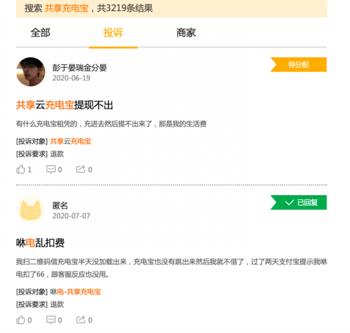 同时,广告虽然只占0.5%的收入,但是却影响了整个共享充电宝的使用体验,引来用户的吐槽。打开大部分共享充电宝的小程序,都会看见满屏的弹出广告,好多底部也是广告栏。根据黑猫投诉网站显示的数据,共享充电宝相关的投诉超过了3000条,包括使用体验差、乱扣费以及客服不作为等。