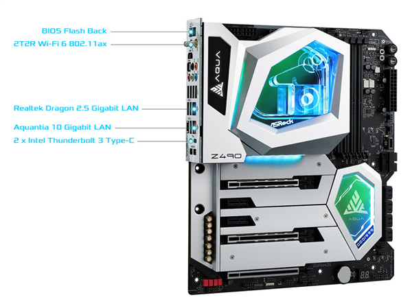 想要升级十代酷睿发烧平台的壕玩家注意了,可能是迄今为止最强、最豪华的Z490主板开卖,这就是华擎的Z490 Aqua,OLED屏+水冷+PCIe 4.0+雷电3+10万兆网卡一应俱全,售价1100美元,全球限量999块,反正没8000块就别想碰了。