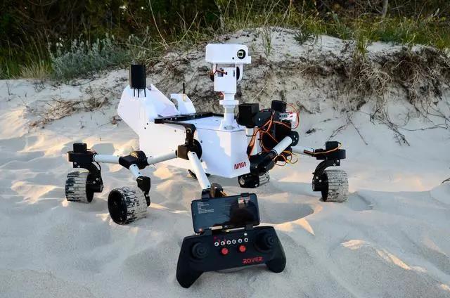 同时,摇臂转向架高度模拟了“好奇号”,环绕摄像头可以进行第一视角拍摄。