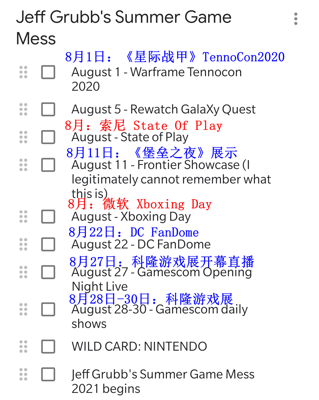 今日(7月31日)外媒 Venturebeat 的编辑 Jeff Grubb 在自己的推特上更新了自己的游戏日程表,如果他曝光的信息无误的话,那么在8月份,索尼和微软都会举办一场发布会。根据 Jeff Grubb 的日程表,索尼会在8月举办一场“State Of Play”直播,而微软会举办一个名为“Xboxing Day”的活动。