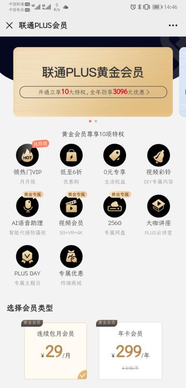 联通PLUS黄金会员全年可享价值3096元的十大优惠特权,在白银会员权益基础上增加了 5G沃视频黄金会员、沃云盘尊享会员、沃助理智能应答会员3项联通专属产品。联通PLUS会员后续还将根据用户需求,定期调整权益可选项。(张俊)
