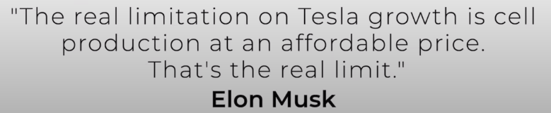 (“特斯拉销量增长的真正瓶颈是电池的低成本量产”)