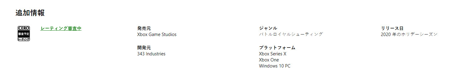 《光环:无限》Xbox商城日本官网如图一所示,经过谷歌翻译后,游戏类型为“大逃杀射击(Battle Royale Shooting)”,而本作的英文和其他官网上,游戏类型描述都是“射击游戏”。