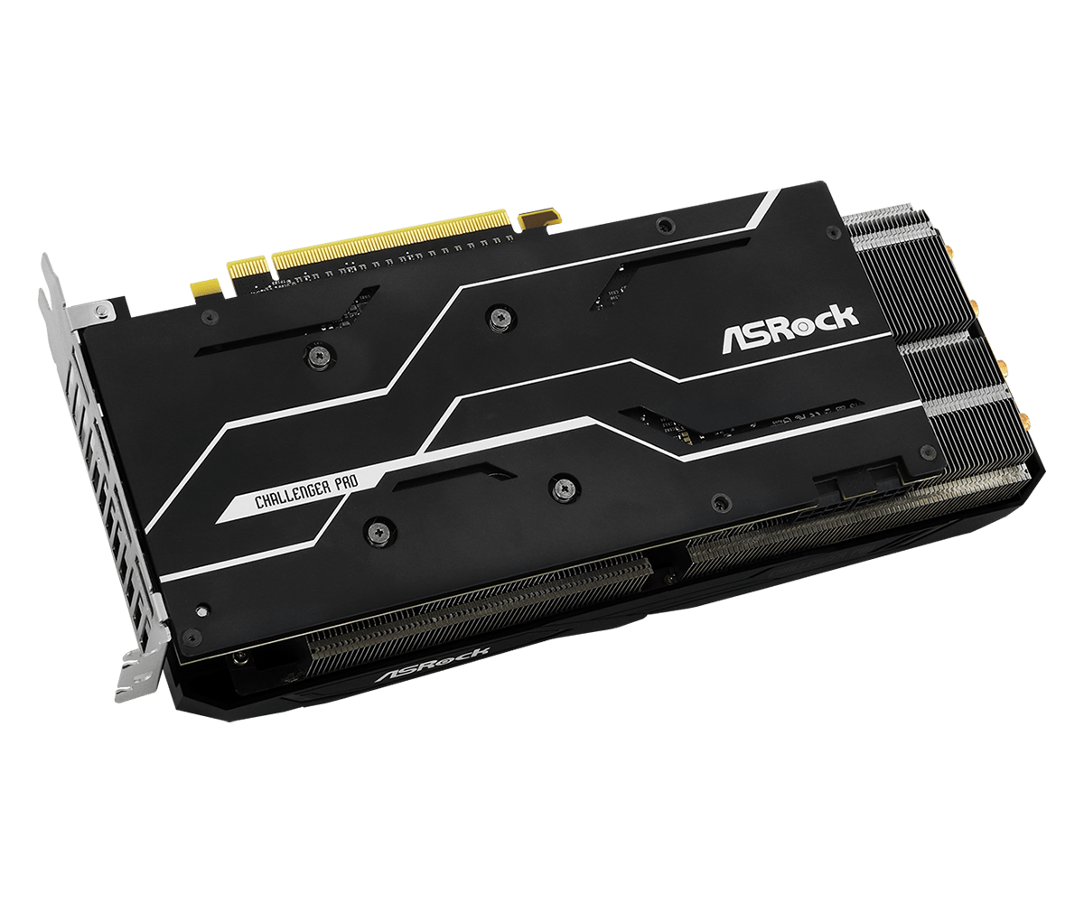 华擎Radeon RX 5700 XT Challenger Pro 8G OC采用了全新风格的三风扇散热器,采用特殊的激光雕刻和风扇标签上的同心圆抛光处理,金属背板增强了产品的强度,使显卡的整体外观更加完整,内含三个8cm风扇,支持0dB静音散热技术,可以引导风扇在显卡温度较低时停止转动,从而提供更安静的环境。散热器中包含了一个更大的散热片,其表面积明显增加,从而提供了有效的散热潜力。