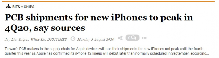和苹果给出的预告类似,今年子板出货时间也比以往推迟了2~4周时间。