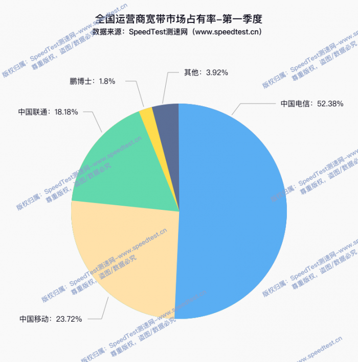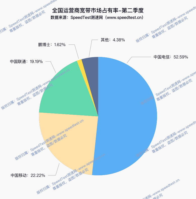 三大运营商作为宽带市场的主流,占据了绝大部分的市场份额,与第一季度相比,第二季度市场占有率减少了0.28%,小运营商市场份额有所回升。