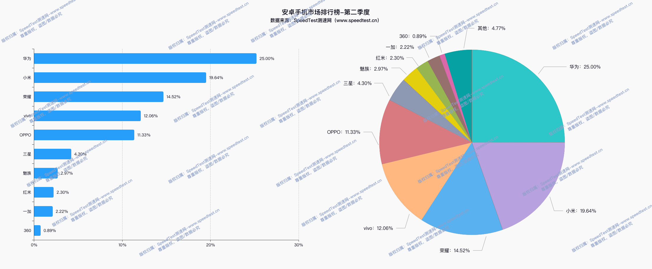 随着复工复产,2020年第二季度安卓手机市场占比也有所变化,华为、小米、vivo、OPPO等品牌依旧位列前五,其中vivo的占比从11.14%增长到12.06%,OPPO从9.65%增长到11.33%,而华为的占比从27.80%降到25%,小米也有一定的减少。在第二季度的市场占比中360成功进入TOP10的行列,而Realme则不幸落选。