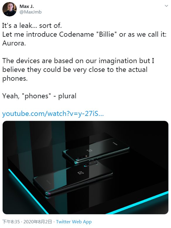 此外 Max J. 透露,一加或将之列入全新的 OnePlus Aurora 产品线,且 Billie 1 和 Billie 2 的定价较 OnePlus Nord 更具吸引力。