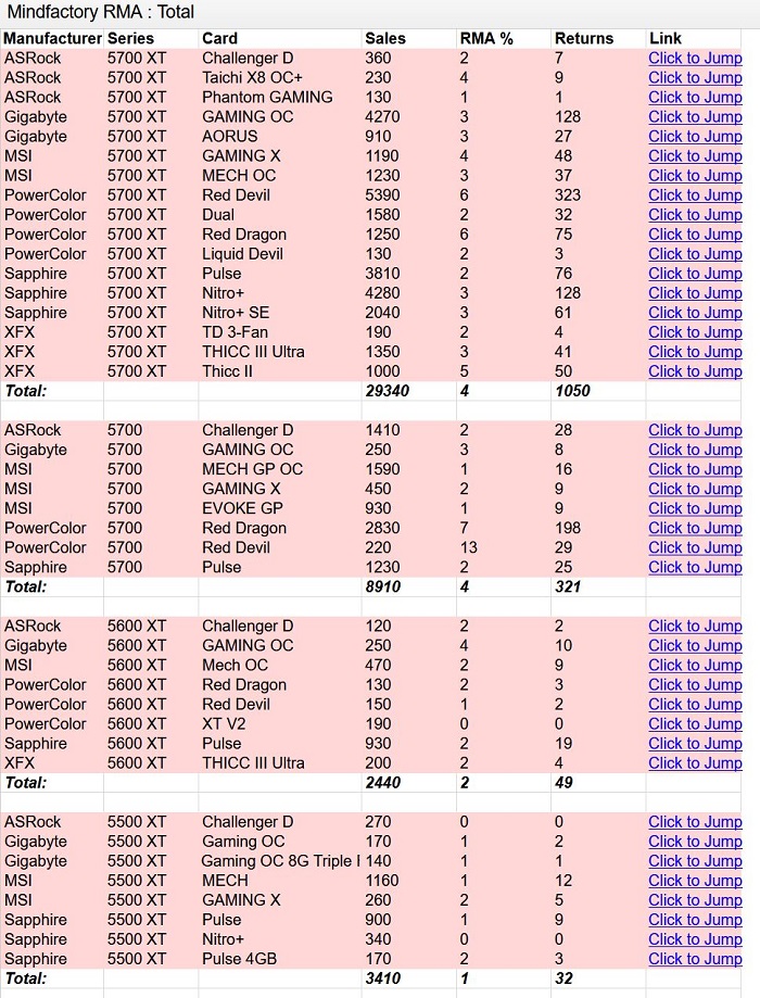 德国零售商 Mindfactory.de 刚刚分享了一批显卡售后数据,结果表明 AMD Radeon 5000 系列 GPU 的故障率高于英伟达 Turing 竞品,且投诉主要围绕在 Powercolor 品牌。鉴于数据集中包括了大约 4.4 万块 AMD 显卡和 7.6 万块英伟达显卡,其在统计上的意义还是相当值得参考的。