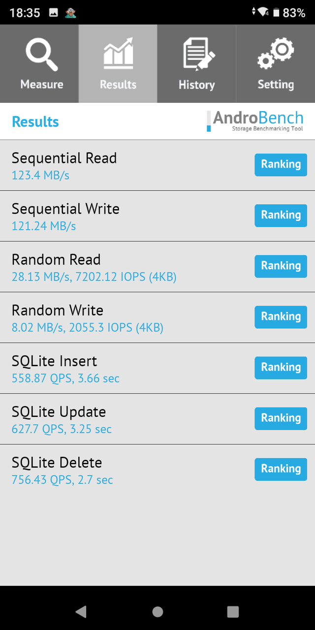 目前不清楚Nokia C3采用的闪存类型和具体协议,从AndroBech测试结果来看,Nokia C3的闪存读写速度要比目前入门机当中主流的eMMC 5.1闪存还要慢一些。