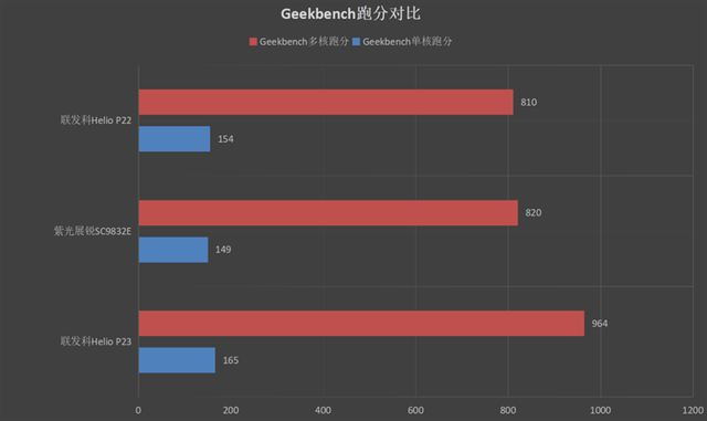 综合比较起来,紫光展锐SC9832E的CPU单核心能力与联发科Helio P22、Helio P23相近,多核能力接近Helio P22,与Helio P23相比略有差距。
