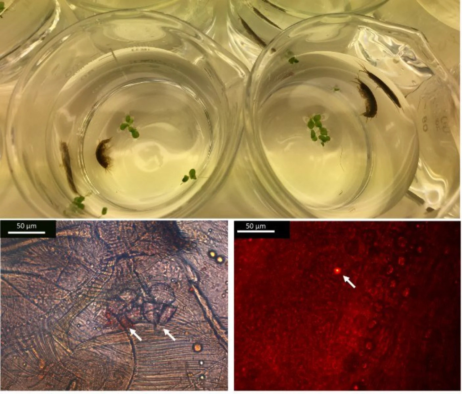 这项研究是由爱尔兰科克大学的科学家们进行,其研究重点是一种长2厘米的甲壳类动物,被叫做Gammarus duebeni,它们生活在爱尔兰的淡水溪流中。该团队让这些生物在实验室中接触到装有特定颜色染料的微塑料。
