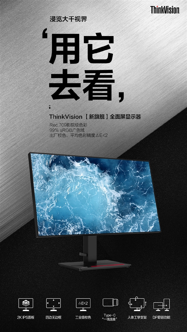 从联想官方获悉,ThinkVision P系列薪旗舰显示器将于8月18日开启预售,主打2K IPS面板、四边无边框、工业级校色、Type-C一线连接、人体工学支架、DP菊链功能。据悉,ThinkVision P系列不仅支持99%Rec.709影院级显色,还有99%sRGB与85%DCI-P3多色域加持,同时出厂校色(△E<2)。