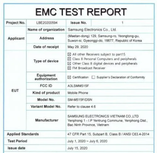 三星Galaxy M51已经在传言中出现了一段时间,这台面向中端的新机据说将在9月份亮相。现在,Galaxy M51已经被发现在FCC数据库红现身,从而揭示了其关键规格。内容包括 "关于手机"菜单的截图,确认了该手机的零售名称,以及它的型号为SM-M515F。