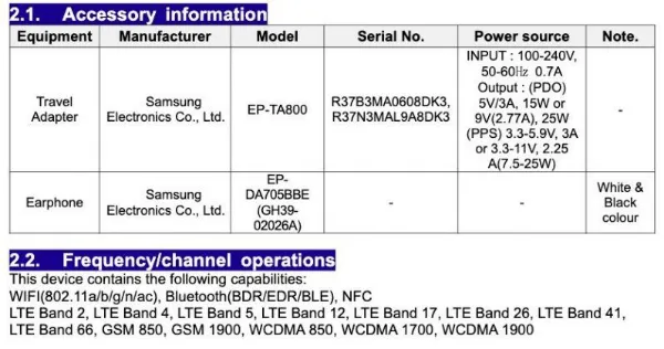 它有两个IMEI号码,意味着它支持双SIM卡连接。'状态'菜单截图显示,Galaxy M51将支持25W(9V×2.77A)充电,并配备EP-TA800旅行适配器。遗憾的是,这款手机的全部硬件规格并没有被透露。