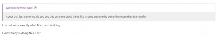 而在另一篇帖子中,Imran Kahn表示,索尼独占《漫威复仇者联盟》蜘蛛侠角色的这笔交易仅仅是个开始,因为索尼为此做了很多。Imran Kahn说:“我不知道微软目前在干什么,但是我知道索尼现在正在(为独占)做很多事情。”