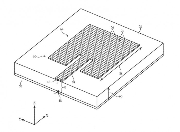 这是一条细细的缝隙,而天线一直是一个特别小的组件,在一个极度紧凑的机箱内。现有的实现方式是可行的,因为Apple Watch可以接收Wi-Fi或无线网络信号,但iPhone相比,它的效果很差。苹果这项专利带来一个解决方案,天线可以嵌入显示模块内,该天线可以包括由屏幕介电层上的交错导电线网格形成的天线谐振元件。因此,与其说是一个狭长的天线,不如说是一整块网格,占据了显示屏的一部分或整个显示屏。显然,这将给天线带来更大的表面积,改善接收效果。