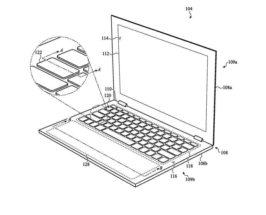 苹果名为"带动态触控板的发光设备外壳"的新专利,最初是在2018年4月申请的,描述了如何更好地利用传统的触控板区域。苹果在专利当中表示,一些传统的输入设备包括大型按钮、按键或其他机械驱动的结构,然而,这些类型的输入设备可能缺乏灵活性或适应性,并且可能永久地指示计算系统输入设备的存在。"