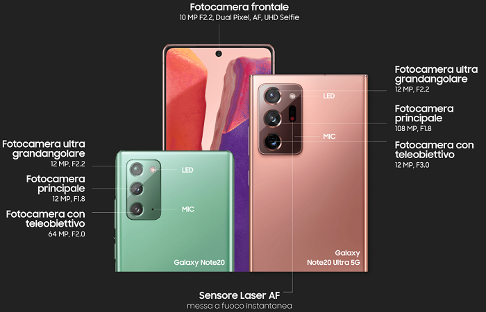 为帮助更好地对焦,三星还为 Galaxy Note 20 Ultra 引入了激光 AF 传感器。至于 Galaxy Note 20 机型,其采用了 12MP @ f/1.8 光圈的主摄、12MP @ f/2.2 的副摄、以及 64MP @ f/2.0 的长焦镜头。