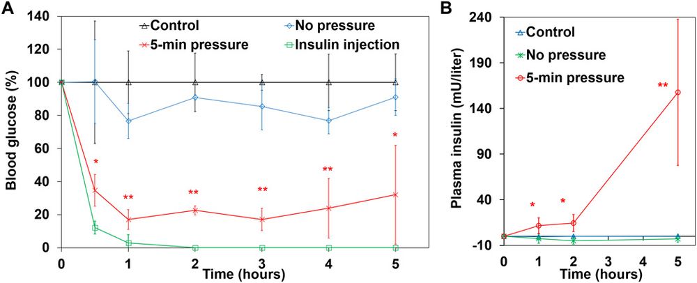 受中医推拿启发,近日来自新加坡南洋理工大学(NTU)的科研团队找到了一种全新的药物输送方法。科研团队使用磁铁来捏住地皮肤并施加压力,从而让胰岛素更安全、更有效地进入到人体中。