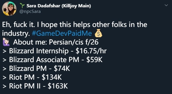 有人贴出了暴雪各岗位工资标准,并将其与友商对比: