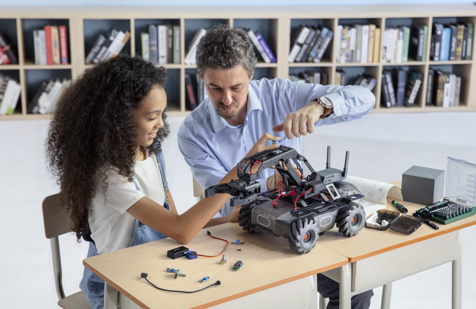 学生们也可以从这个平台上寻找到人工智能介绍。它的智能控制器支持六种AI功能,可以进行视觉标记、包括拍手、手势、人和其他机器人识别等等。它支持的编程语言包括Scratch、Python、FPV控制、自定义UI和多机通信。教师可以使用软件开发工具包,帮助他们协助学生深入了解一切工作原理,同时也可以创建有趣的项目。该平台有针对CSTA和NGSS初中生的 "引人入胜的课程 "支持,大疆还开发了Competition Kit,让老师可以举办课堂搭建/编码比赛。