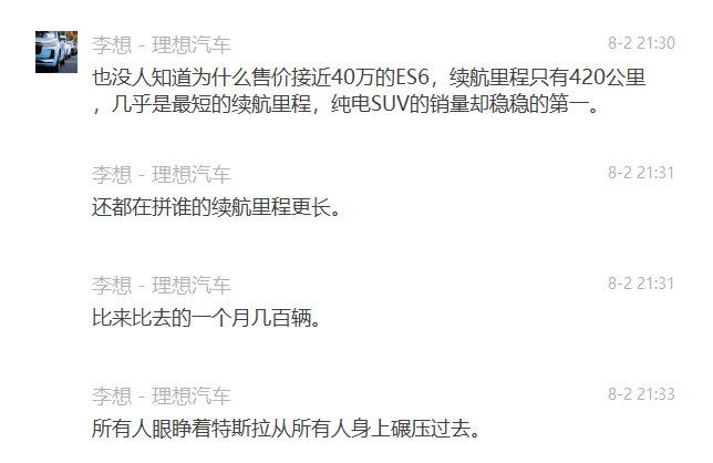 不怪刚刚携理想汽车美股上市的李想,会在微信群和朋友圈感叹:Model 3 已经是“灭顶之灾”,“干翻了一切”;“所有人眼睁着特斯拉从所有人身上碾压过去。”