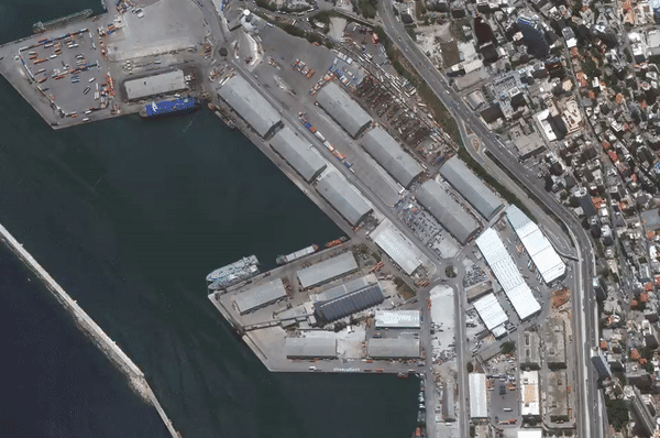 Maxar发布了一张GIF,特写了港口前后的情况。它将爆炸的巨大威力展现得淋漓尽致。