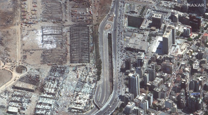 卫星图像公司Planet Labs和Maxar Technologies周三在Twitter上发布了贝鲁特港口地区的前后景色。