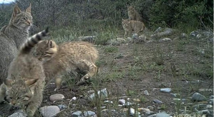 近日,祁连山国家公园青海片区拍到较为罕见的五只荒漠猫同框的画面。据了解,近日祁连山国家公园青海省管理局联合北京大学开展荒漠猫专项调查时,从野外回收的红外相机数据中发现了一组荒漠猫抚育幼崽的珍贵视频画面。